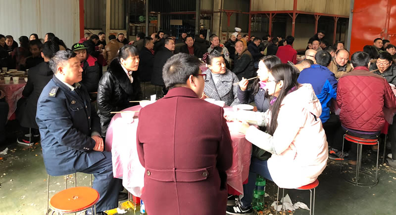 2018年2月5日晚,公司在工廠舉行了獨(dú)具川西特色的壩壩宴,全體員工歡聚一堂,共進(jìn)一餐家一樣的溫馨團(tuán)年飯。公司董事長(zhǎng)鄒永林先生、總經(jīng)理鄭新民先生等,均出席此次宴席,向一年來奮戰(zhàn)在生產(chǎn)經(jīng)營(yíng)一線,為助推公司發(fā)展作出突出貢獻(xiàn)的員工表示忠心的感謝,并致以誠(chéng)摯的問候。